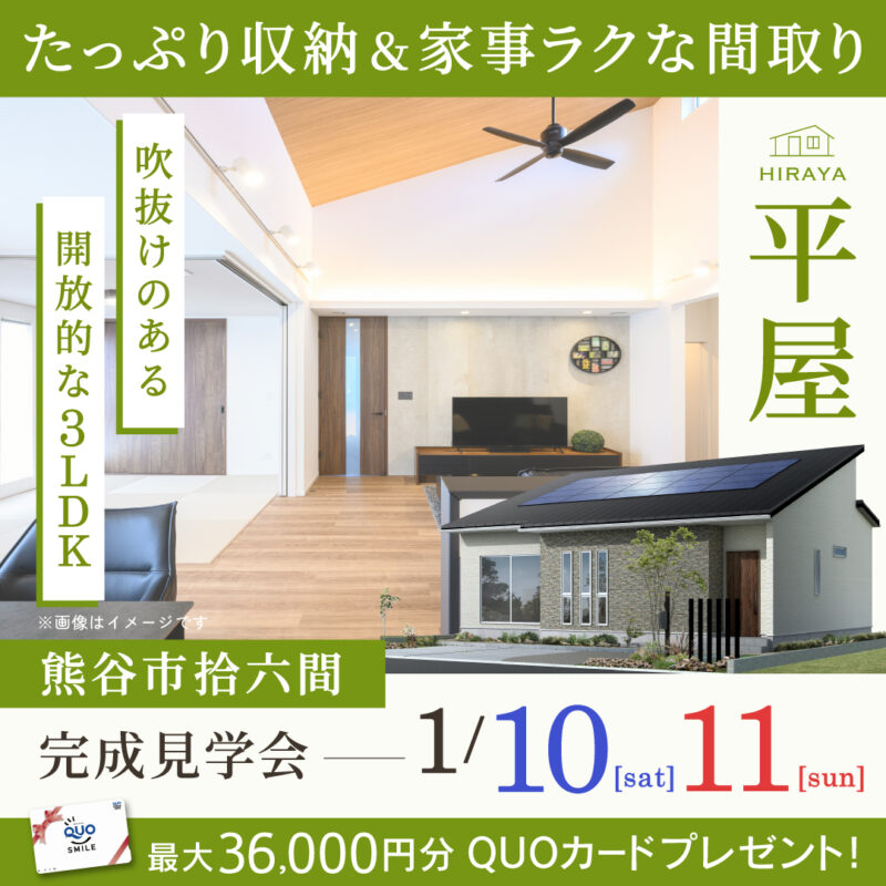 熊谷市の新築完成見学会「吹き抜けのある開放的な3LDKの平屋」ご来場ありがとうございました