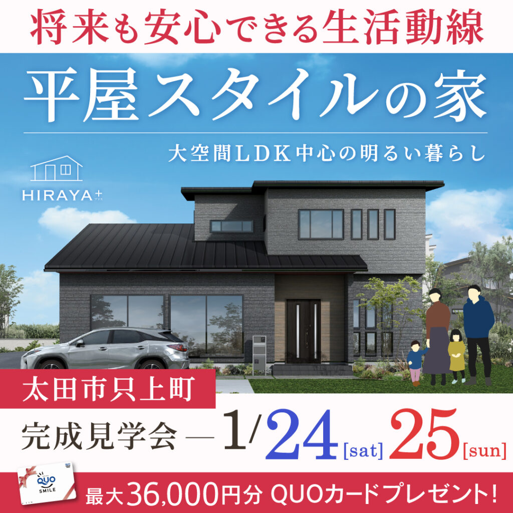 太田市のモデルハウス 最終見学会開催「家族4人で暮らす3LDKの平屋の住まい」