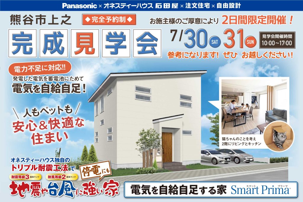 熊谷市 新築住宅 完成見学会【人もペットも安心&快適。電気を自給自足できる住まい】ご来場ありがとうございました