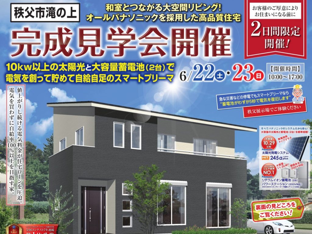 6月22日(土)・23日(日)に秩父市滝の上町で完成見学会を行いました。お客様の新築したてお引…