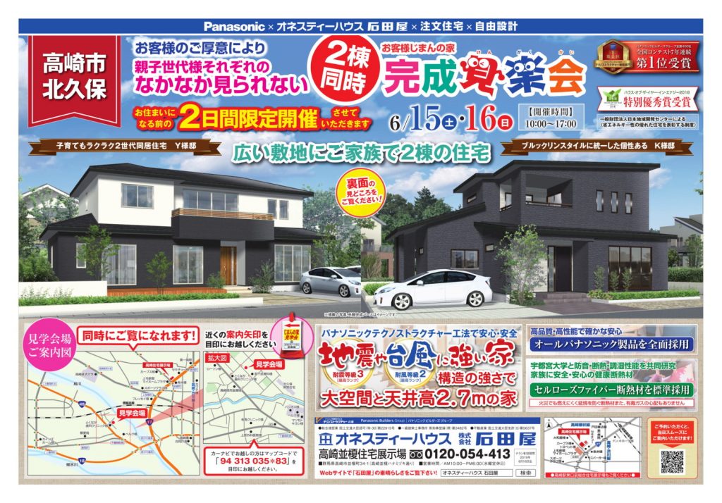 6月15日(土)・16日(日)に高崎市北久保町で2棟同時の完成見学会を行いました!お施主様のご…