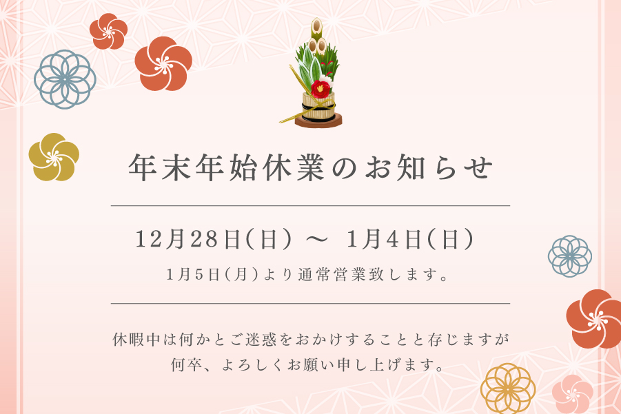 年末年始の営業時間のお知らせ