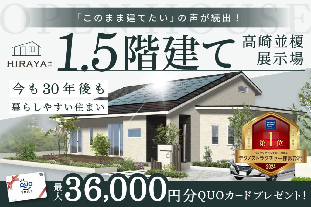 【来場受付中】高崎モデルハウス「30年後も暮らしやすい、家族が心地よく過ごせる1.5階建て」