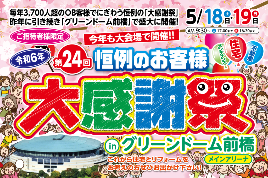5/18(土)・19(日) グリーンドーム前橋にて「お客さま大感謝祭」を開催 今年も、グリーンドーム…