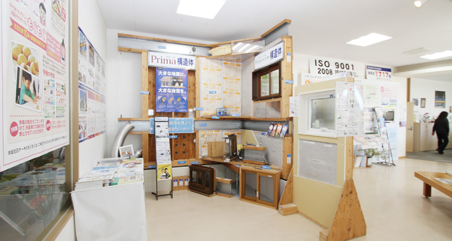 耐震構造体・断熱構造模型を始め、水廻り設備・外壁・瓦など、オネスティーハウスの快適のヒミツを展示してお待ちしております。