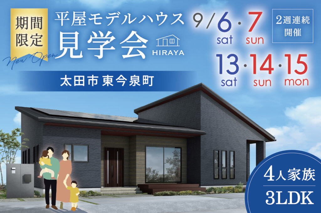 「”家族4人で暮らす3LDKの平屋の住まい” 太田市の期間限定モデルハウス見学会」をご覧ください。