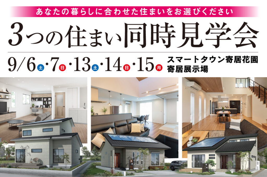 「平屋・1.5階建て・2階建て「太陽光エネルギーを活用した 3つの住まい同時見学会」スマートタウン寄居花園」をご覧ください。