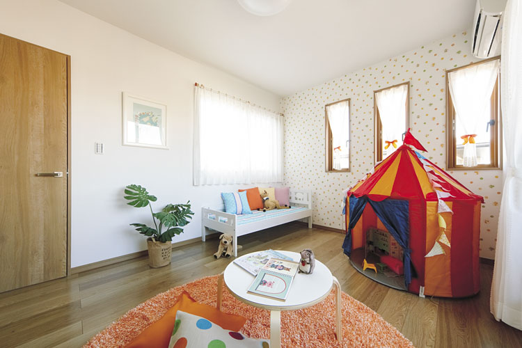 子ども部屋は将来間仕切れるようドアを2つ設置した広々空間。今は一緒に遊んだり学んだり、成長したら勉強に集中できる個室にできます。