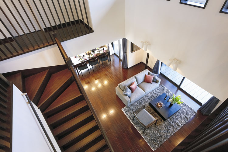 大きな吹き抜けがあり、家族のコミュニケ—ションを重視した間取りのプリーマ館と、ワンランク上のラグジュアリー住宅として上質な空間にこだわったRadius館。
