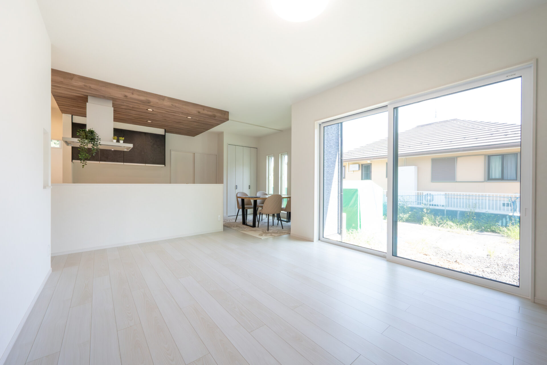 今回見学できるのは、水まわりを一か所にまとめた動線と廊下を活用した収納スペースで家事ラクを実現した間取りに、24帖の大空間リビングを備えた平屋の住まいです。