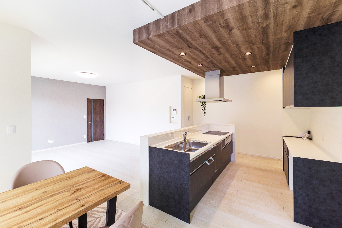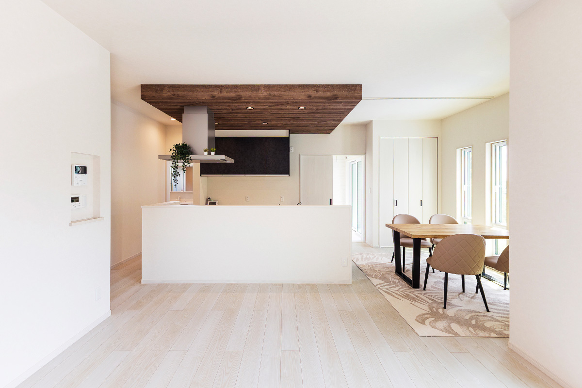 回遊性の高いキッチンやストレート動線の水まわりなど、暮らしラクな賢い間取りの住まい。スタイリッシュな外観とアクセントクロスを取り入れた洗練されたデザインが魅力です。