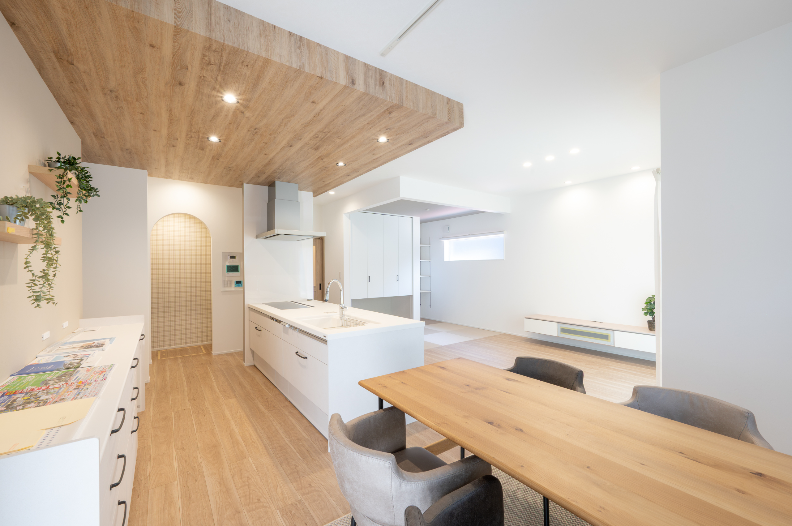 「大空間リビング&家事ラク動線の平屋の住まい」をご覧ください。