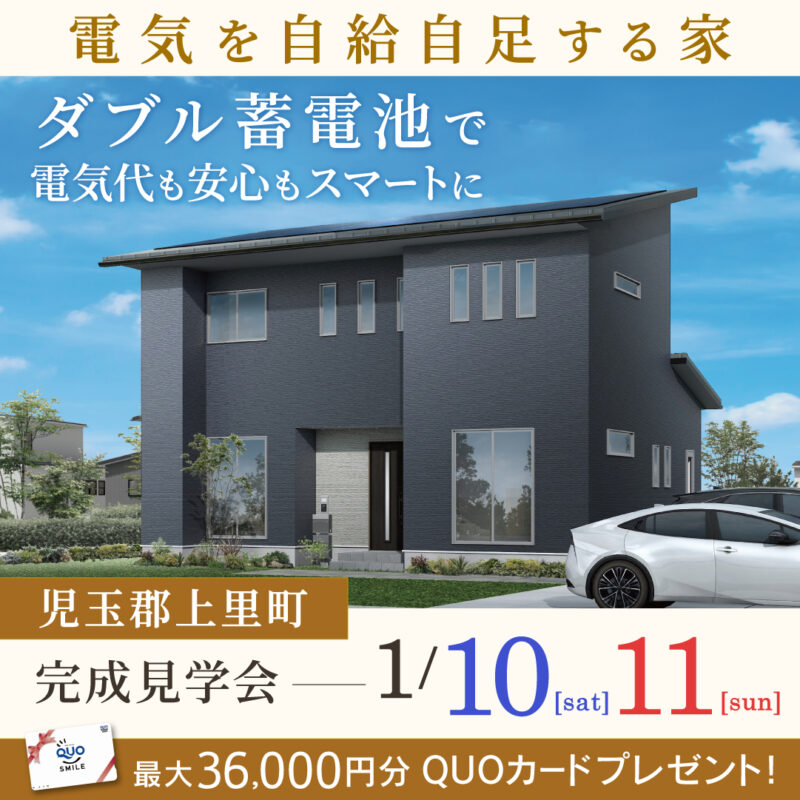 太陽光で発電した電気を大容量ダブル蓄電池にためて、昼も夜もためた電気を使えるから、住んでからの家計を助けます。