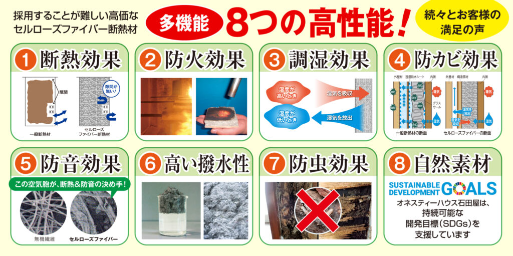 高性能な自然素材のセルローズファイバー断熱材を採用!