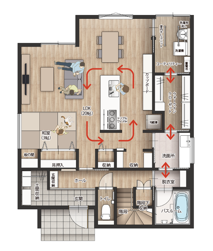 水まわりが一箇所にまとまった家事ラクな間取り。洗う・干す・しまうがスムーズなストレート動線で毎日の洗濯も快適です♪