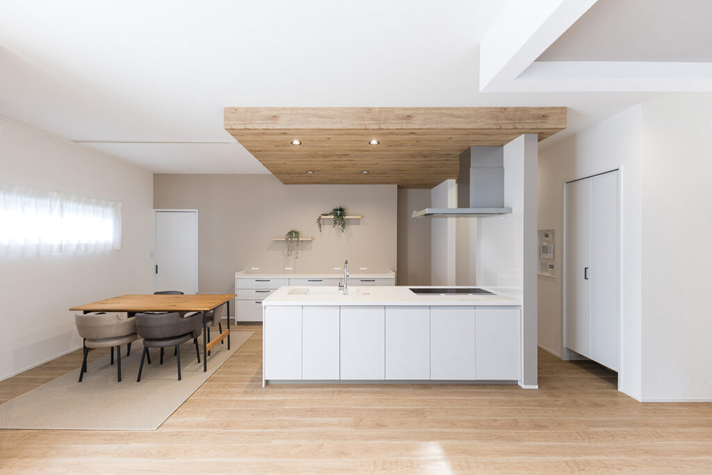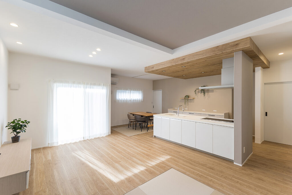 リビングを見渡せるフラットなキッチン