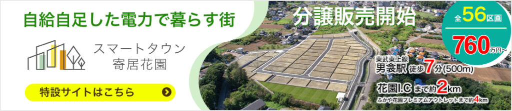 寄居町には、当社の大型分譲地である 「スマートタウン寄居花園」 が位置しており、町の皆さまには日頃より多大なるご協力とご支援をいただいております。