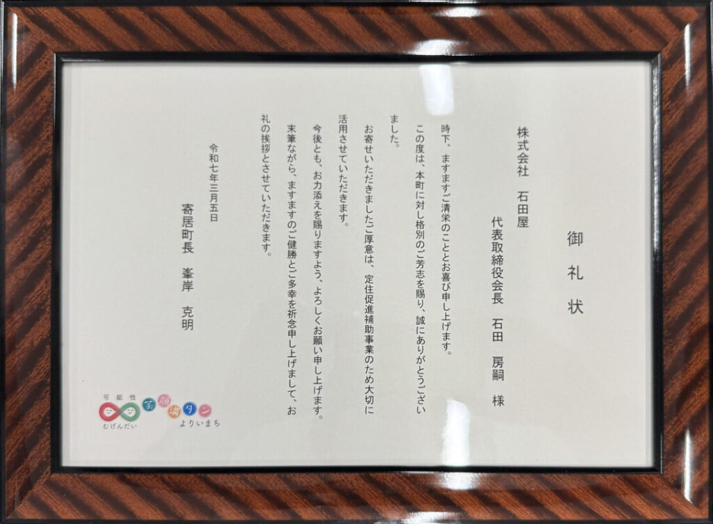 今回の御礼状は、そうした地域とのつながりの証であり、当社としても大変光栄に感じております。