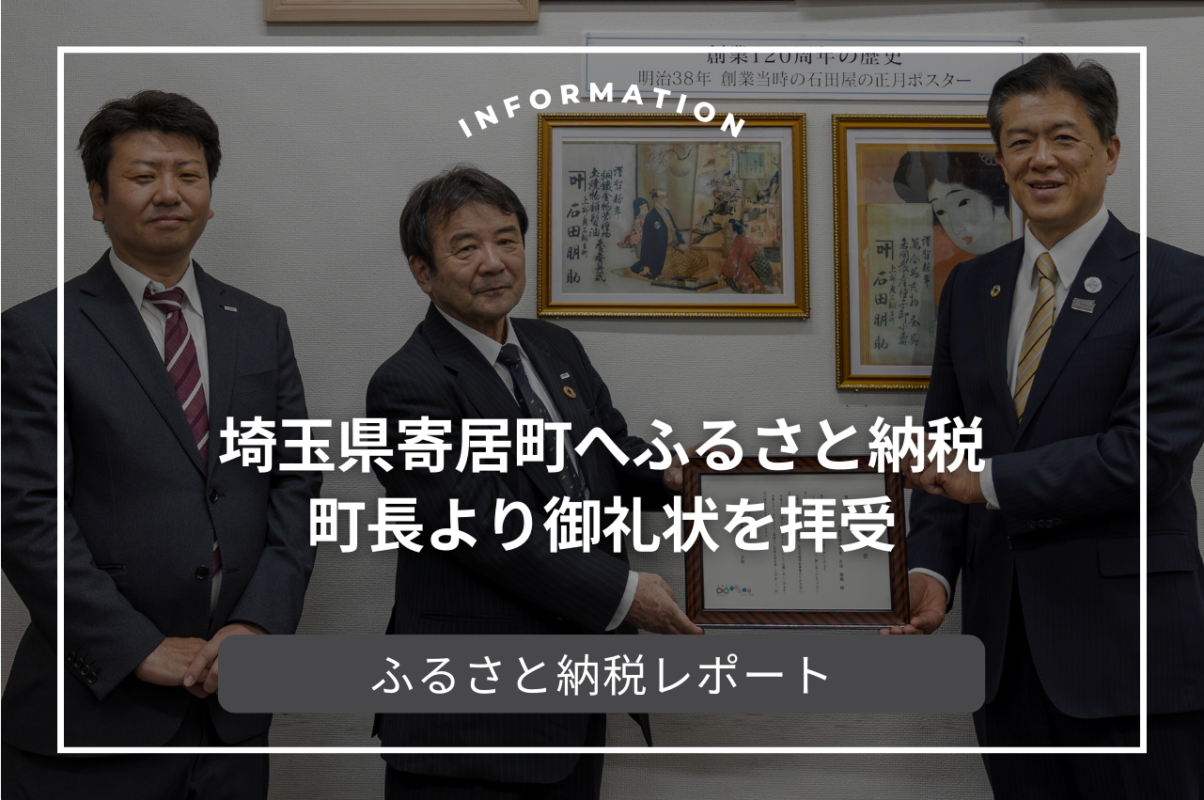 当社は、地域との共生を大切にした企業活動の一環として、埼玉県寄居町へふるさと納税を行いました。