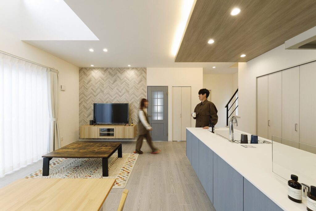 奥様が一目惚れしたブルーグレーのパナソニック製キッチンがLDKの主役