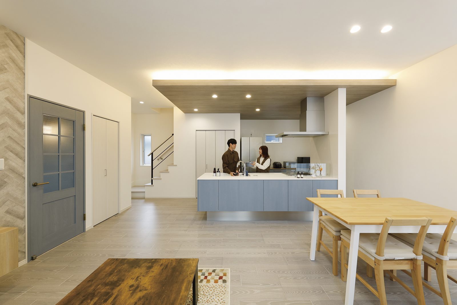 奥様が一目惚れしたブルーグレーのパナソニック製キッチンがLDKの主役