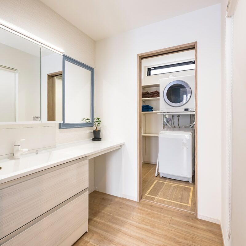 玄関~リビング~キッチンをぐるぐる回れる動線も便利で、洗濯やお風呂のときの行き来がラクです。