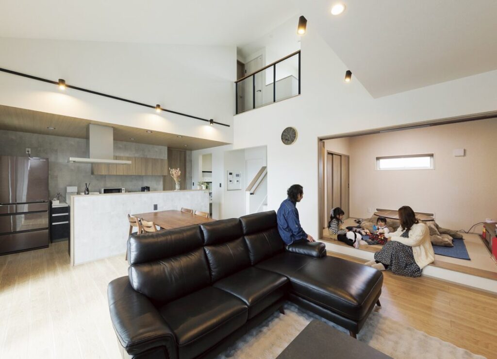 いつも家族一緒にソファと小上がりの和室で団らんしています。