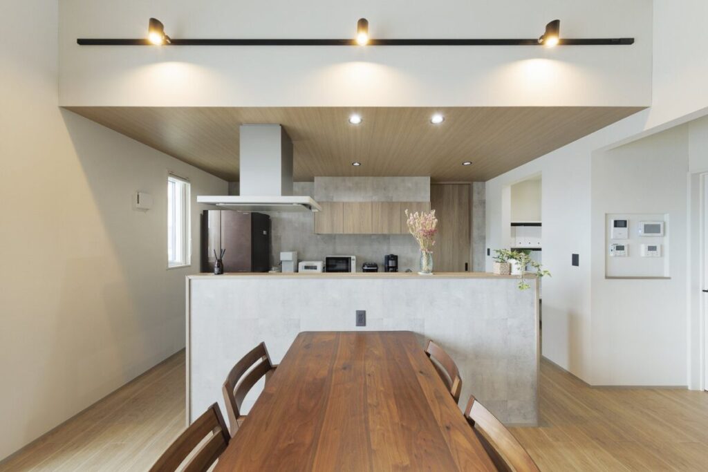 高めのキッチンカウンターで手元を隠して生活感を払拭