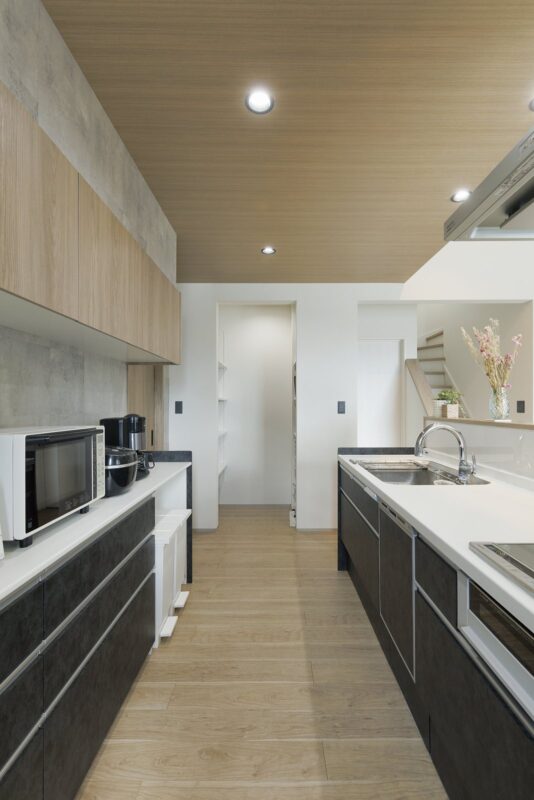 キッチンの内側にはスパイスニッチも。食材は隣のパントリーにすぐしまえる