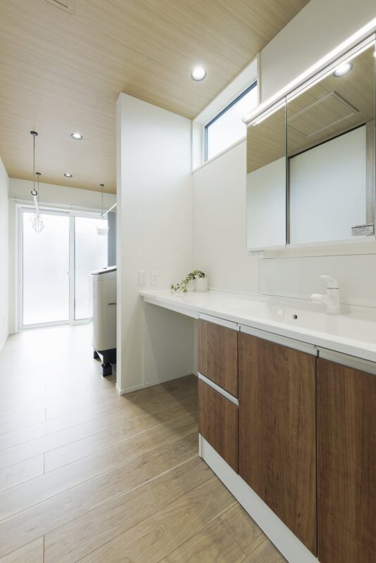 浴室~洗面室~ランドリールームは直結。乾いた洗濯物は近くのWICにまとめて収納