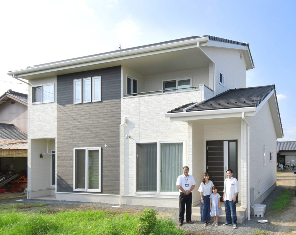 「しっかりとした家を建てたかった」と話すKさんご夫婦は地震に強い耐震住宅工法「テクノストラクチャー」を採用する石田屋を家づくりのパートナーに選び、高品質・高性能住宅「スマートプリーマ2020」の家を建てた。