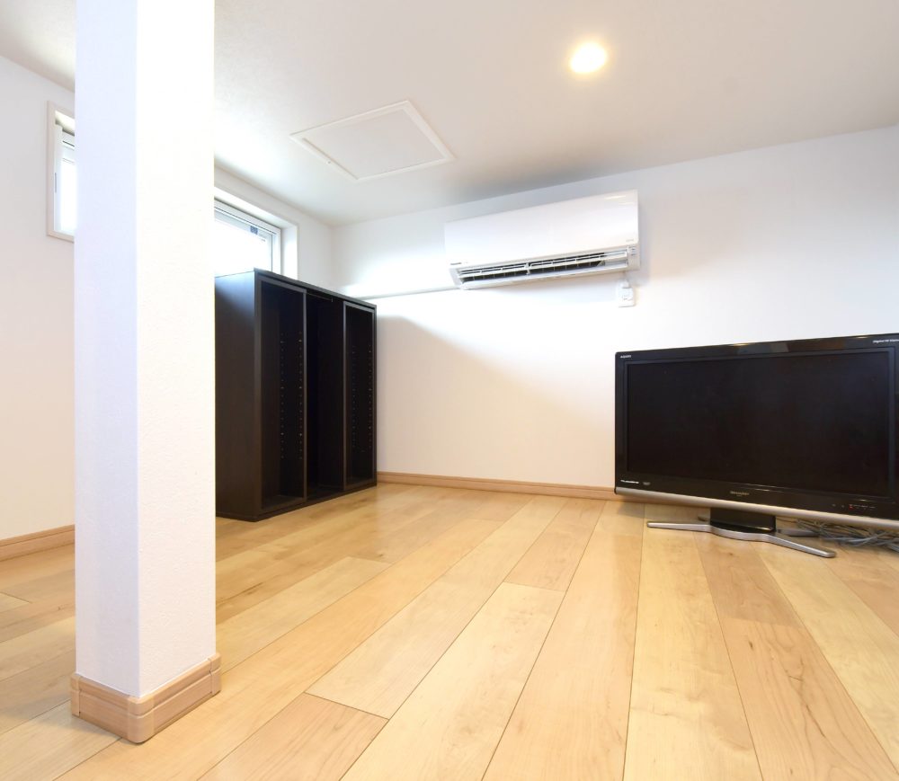 家族の多目的利用が可能なスキップフロアを設けた結果、その下の空間に便利な大型収納スペースが生まれた。