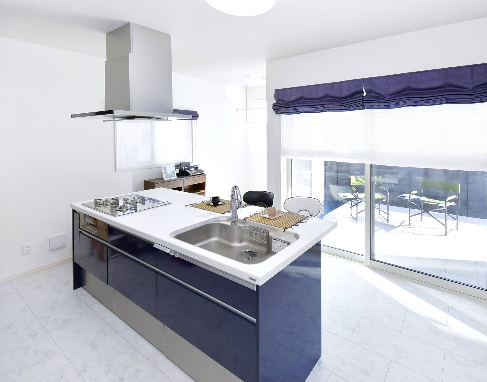 外壁に象徴されるように、2人が好きな青色をテーマカラーにした。