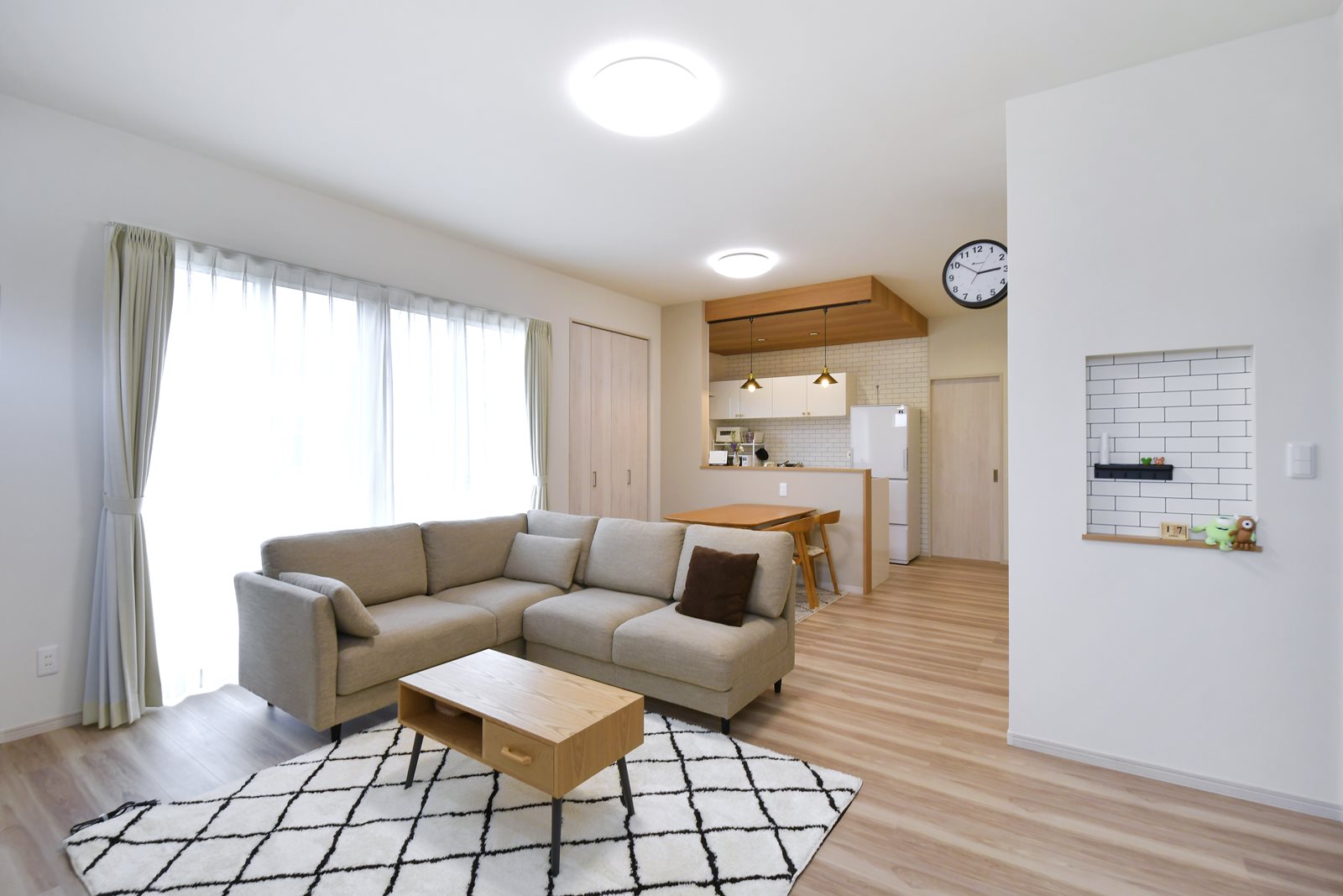 北欧風の淡い色合いで統一したナチュラルであたたかみのある雰囲気もK邸の特徴だ。