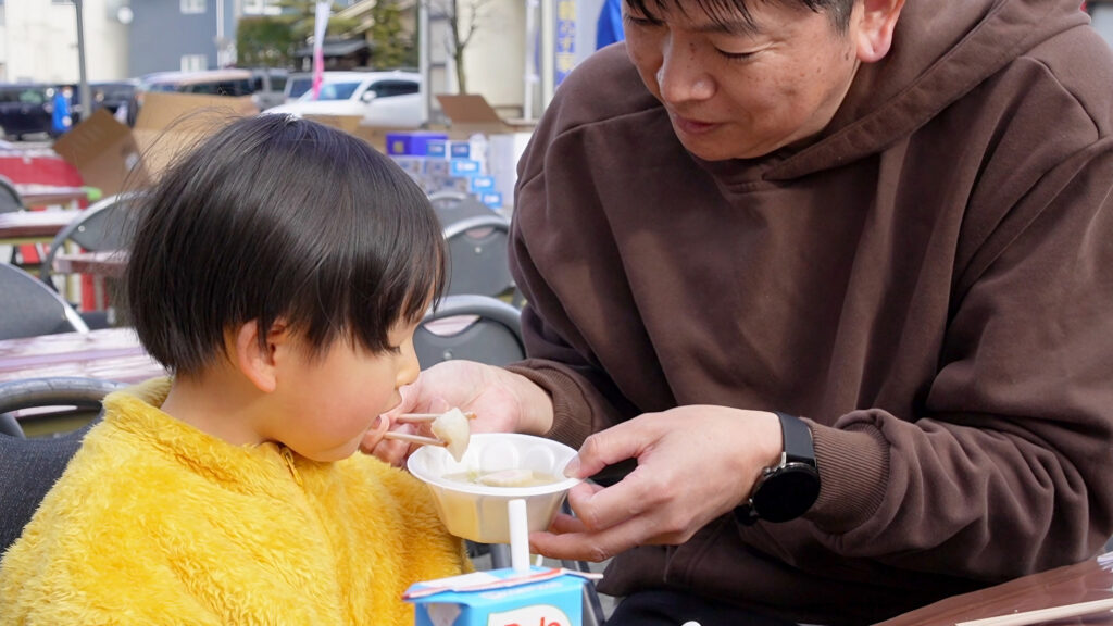 お餅は、お雑煮、おしるこ、きなこもち、からみもちといった様々なスタイルで来場客に振る舞われ、心も体も温まるひと時となりました。