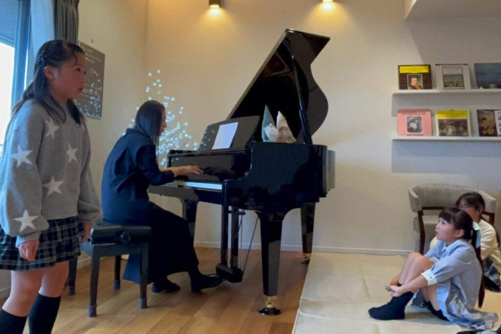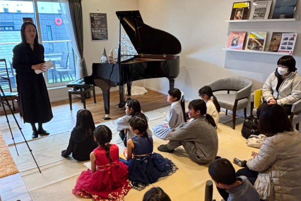 演奏の合間には先生によるミニピアノレッスンも行われ、プロの視点からのアドバイスに熱心に耳を傾ける場面も。