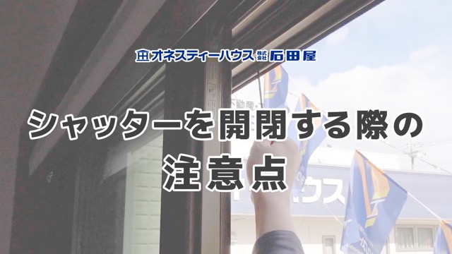 オネスティーハウス石田屋メンテナンス動画です。 シャッターを開閉する際の注意点をご説明して…