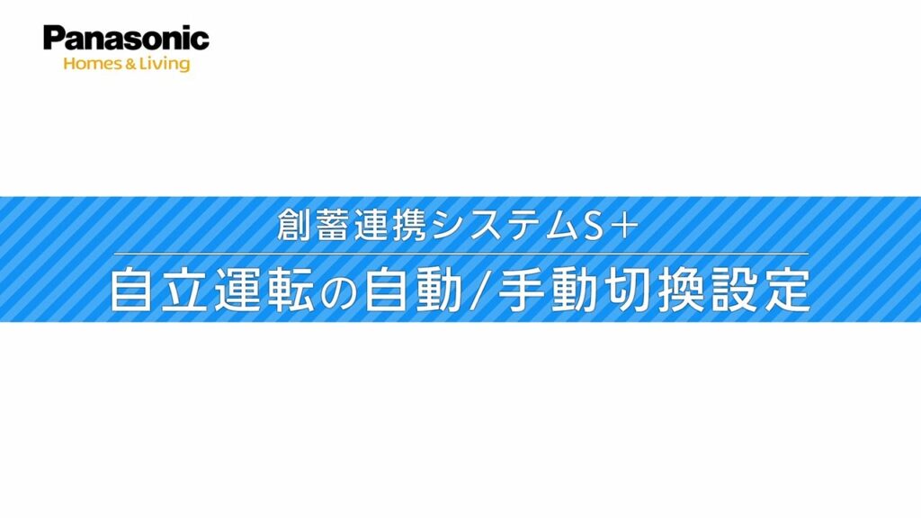 創蓄連携システムS+ 自立運転の設定変更(停電時手動切換を自動切換へ)の説明動画です。 キー…
