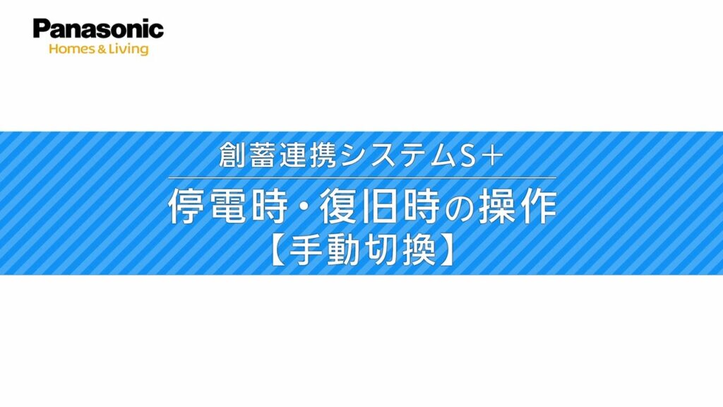 創蓄連携システムS+ 自立運転(手動切換設定時)の停電時/復旧時 操作説明動画です。 お引渡し…