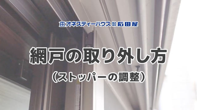 オネスティーハウス石田屋メンテナンス動画です。 網戸の取り外し方(ストッパーの調整)をご説…