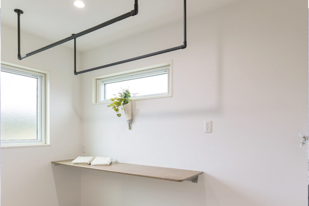 洗う・干す・畳むを一箇所で完結できるランドリールーム。隣接するファミリークローゼットとつながることで、“時短”と“快適”を叶える