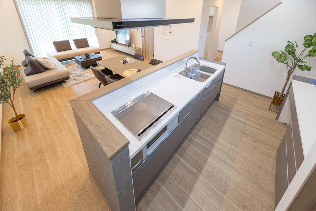 キッチン・洗面室・ホール・LDK・ファミリークローゼットがぐるりとつながるW回遊動線。暮らしやすく家事ラクな間取り