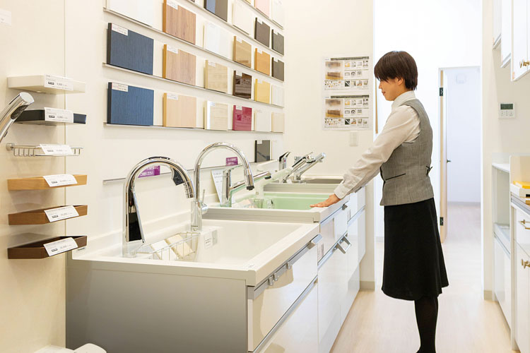 毎日使うキッチン。どの高さが作業しやすいか実際に触れて確かめられます。