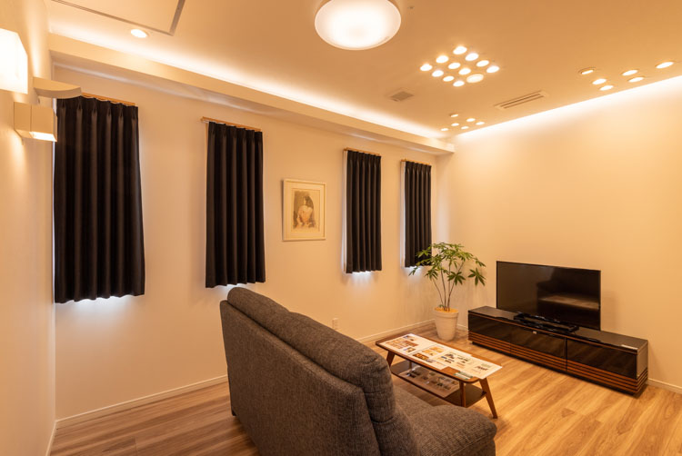 ダウンライトや間接照明など、LED照明の組み合わせを確認できます。