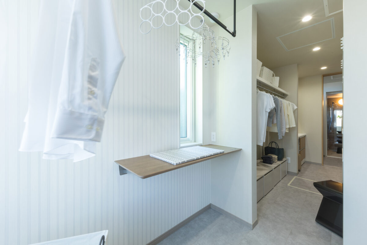 脱衣所・洗濯室・ファミリークローゼット・ランドリールームが一直線で使いやすい