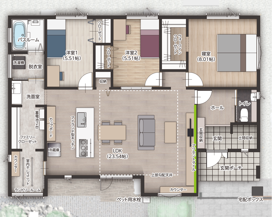 あらゆる場面で生活をサポートするIoT設備の整い、ペット専用フローリングでペットも安心