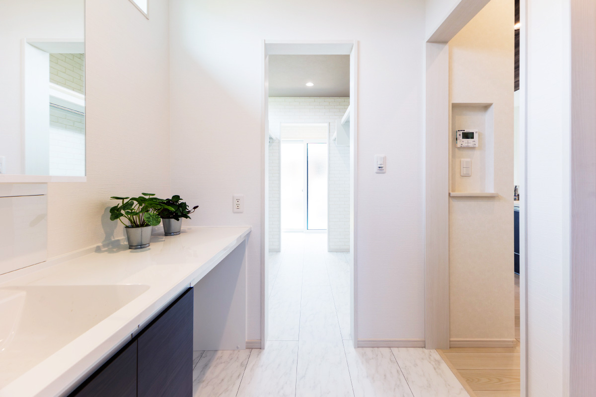脱衣所・洗濯室・ファミリークローゼット・ランドリールームが一直線で使いやすく、雨の日も安心して洗濯ができます。