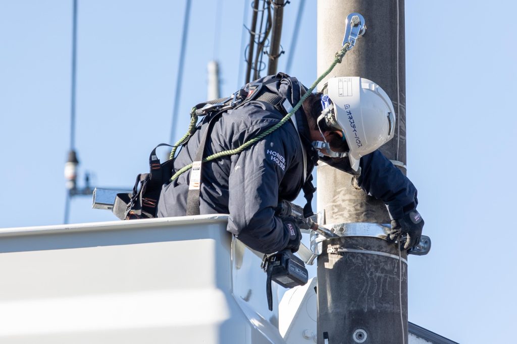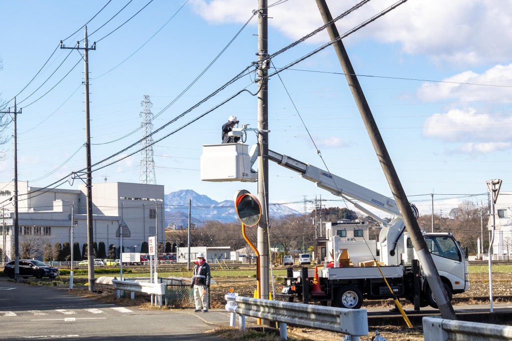 この度、本社のある藤岡市の小学校・中学校に防犯カメラを寄付させていただき、通学路への取り付け工事を行いました。