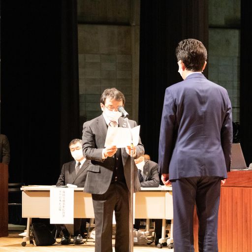 今年は藤岡市長と藤岡市教育委員会の教育長さんがいらっしゃり、藤岡市内の全小中学校16校の通学路へ設置する防犯カメラを藤岡市へ寄贈させていただきました。