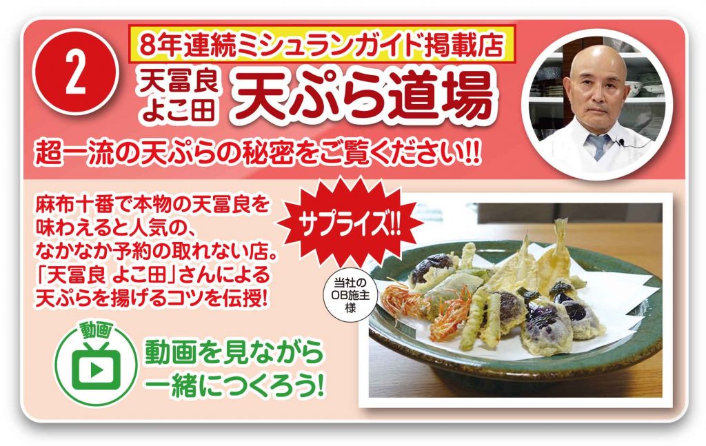 また、今年はサプライズ企画として「ミシュランガイド掲載店の天ぷら道場&そば打ち道場」の動画と、抽選10組様限定で【プレミアムお食事会】をご用意しております☆